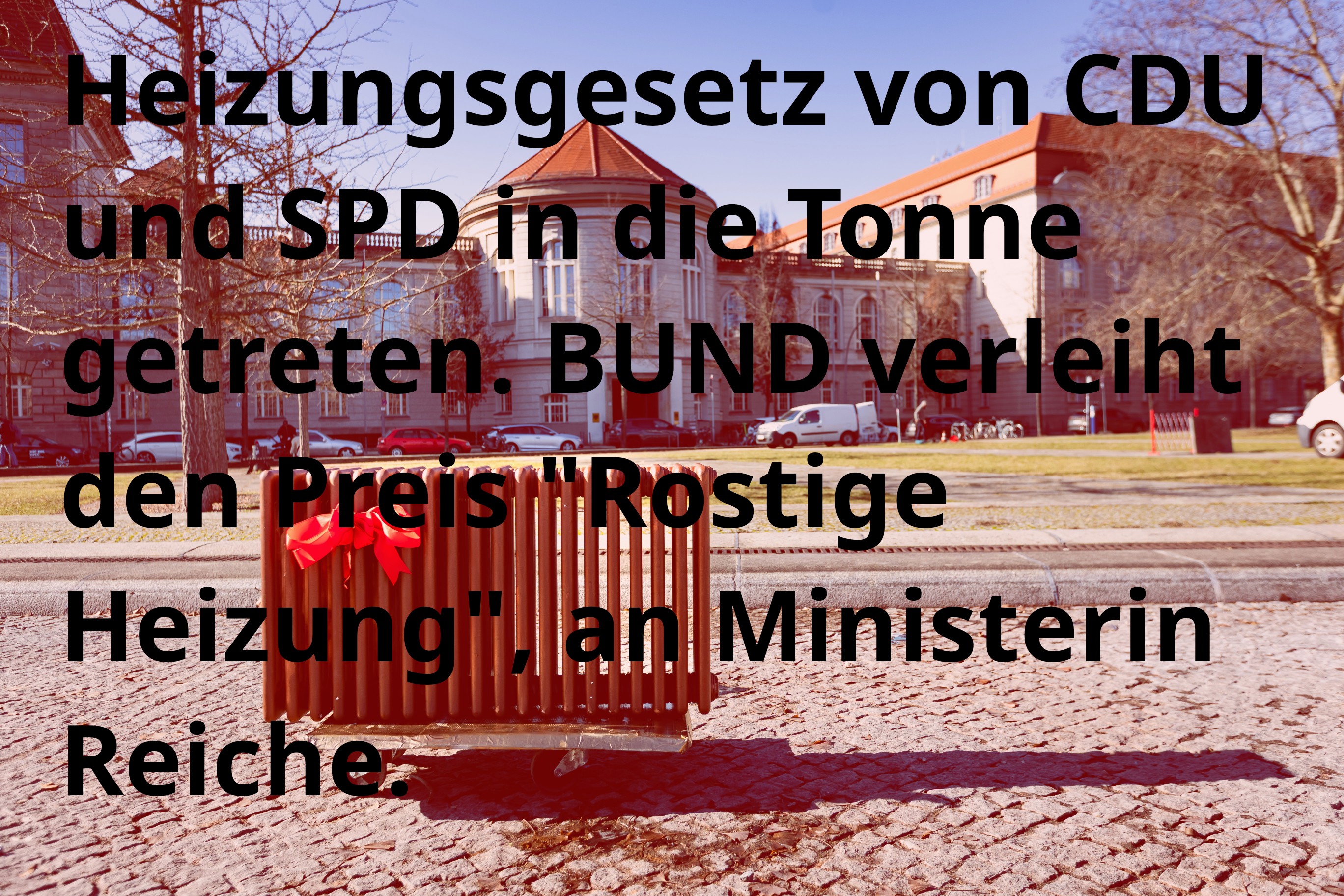 Dafür hat der BUND die Bundeswirtschaftsministerin Reiche mit dem Negativpreis „Die rostige Heizung 2026“ ausgezeichnet.