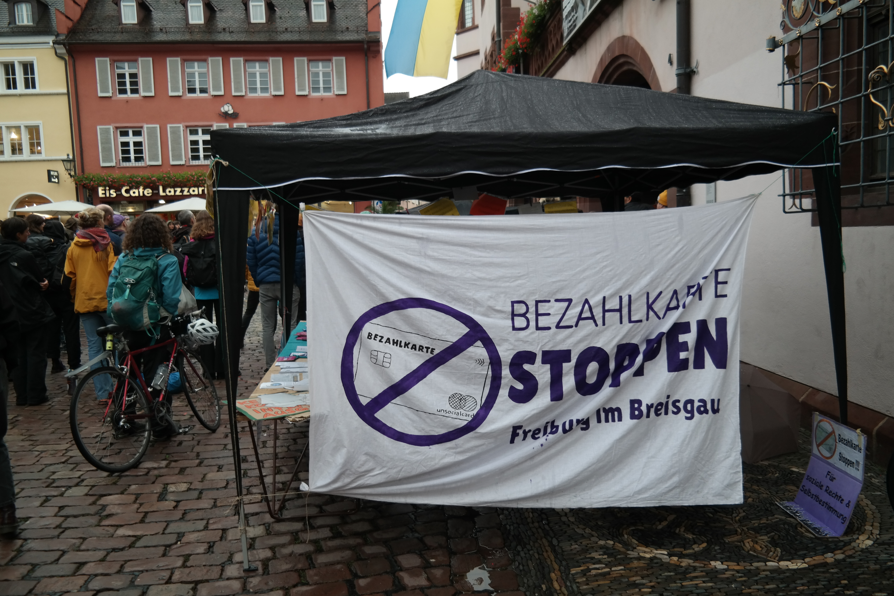 Wir haben mehrfach darüber berichtet. Mit einer förmlichen Weisung hat das Regierungspräsidum Freiburg die Stadt Freiburg als letzte Kommune in Baden-Württemberg gezwungen, den Prozess zur Einführung der Bezhalkarte für Personen, die unter das Asylbewerberleistungsgesetz fallen, zu starten. Etwa 500 Menschen könnten davon betroffen sein. Im Migraionsausschuss des Freiburger Gemeinderats am 25.09. gab Sozialbürgermeister Kirchbach nun bekannt, dass die Stadt Freiburg am 24.09. die ersten 200 Bezahlkarten bestellt hat. Parallel zur Sitzung des Gemeinderats fand vor dem Rathaus eine Kundgebung unter dem Motto „Nein zur Bezahlkarte in Freiburg und anderswo!Nein zur Bezahlkarte für Bürgergeldbezieher*innen! Nein zur Bezahlkarte für Geflüchtete!“ statt. Etwa 120 Menschen haben sich daran beteiligt. Radio Dreyeckland hat die Ausschusssitzung und den Protest begleitet.