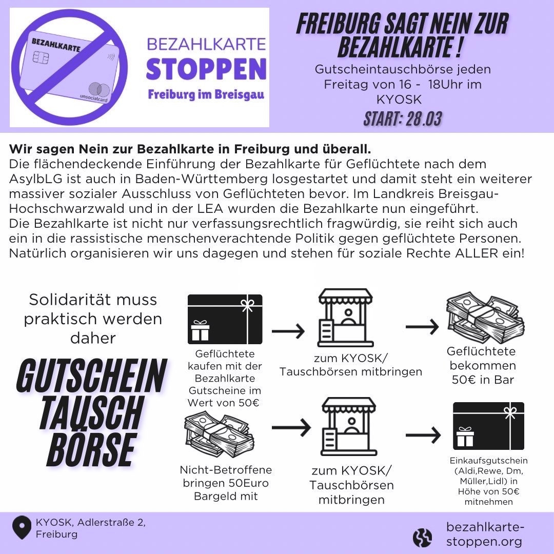 Der Bürgergeld-Regelsatz ist mit 563 € für eine alleinstehende Person schon sehr niedrig. Menschen, die unter das Asylbewerberleistungsgesetz fallen erhalten mit 441 € für Alleinstehende noch einmal deutlich weniger Geld. Bundesweit wird jetzt auch noch, bis auf wenige Ausnahmen, für diese Menschen die Bezahlkarte Pflicht. Das Bargeld ist üblicherweise auf 50 Euro/Monat begrenzt. Die Stadt Freiburg hatte sich bisher geweigert sie einzuführen. Statt auf die rassistische Entmündigung der Betroffenen aufmerksam zu machen, wurde zumeist einfach auf den hohen bürokratischen Aufwand verwiesen. Nun hat, wir haben darüber berichtet, das Regierungspräsidium Freiburg in Folge eines Erlasses des baden-würtembergischen Justizministeriums aus dem Oktober 2024, der die landesweite Einführung vorsah, die Stadt per Weisung gezwungen, die Bezahlkarte einzuführen. Freiburg ist die letzte Kommune in Baden-Württemberg, die den Einführungsprozess nun startet. Das geschieht gegen den expliziten Willen der Gemeinderatsmehrheit und der Stadtverwaltung. Der für die Einführung der Bezahlkarte notwendige „Rollout-Prozess“, solle, so das Regierungspräsidium, bis spätestens zum 10. Oktober angestoßen sein. Auf der gemeinsamen Sitzung des Ausschusses für Migration und Integration und des Ausschusses für Schulen und Weiterbildung am 25. September soll über den Stand der Dinge informiert werden. An diesem Tag möchte auch die Initiative Bezahlkarte Stoppen die Sitzung mit Protest begleiten. Darüber haben wir mit Walter Schlecht von Aktion Bleiberecht und der Initiative Bezahlkarte-Stoppen gesprochen.