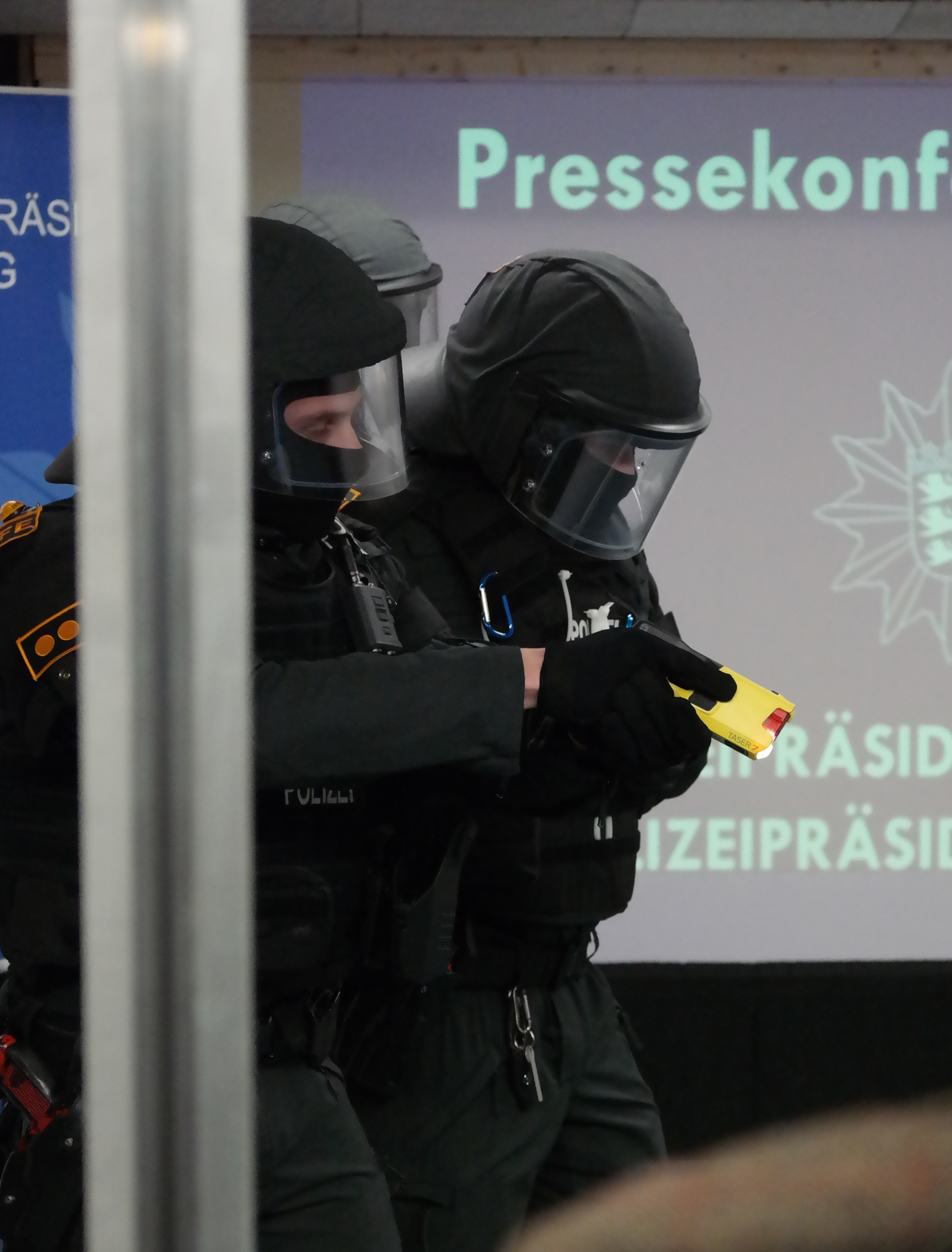 Wir haben bereits berichtet: Seit dem 16. Januar sind beim Polizeipräsidium Freiburg Streifen testweise mit Tasern unterwegs. Auch in Weil am Rhein und Titisee-Neustadt ist die Polizei damit ausgestattet. Zudem soll die Beweissicherungs- und Festnahmeeinheit in Göppingen die Waffe einsetzen dürfen. Nach einer zweijährigen Evaluation könnte die Waffe dann flächendeckend in Baden-Württemberg eingeführt werden. Eingesetzt werden soll er ausgerechnet bei Personen, bei denen das gesundheitliche Risiko am größten ist. Radio Dreyeckland war bei der Pressevorführung des Tasers in Umkirch, bei der sich Innenmnister Strobl nicht nehmen ließ, selber einen Schuss abzugeben und befragte auch den Kriminologen Tom Kattenberg und den Polizeiwisschenschaftler Rafael Behr. (FK)