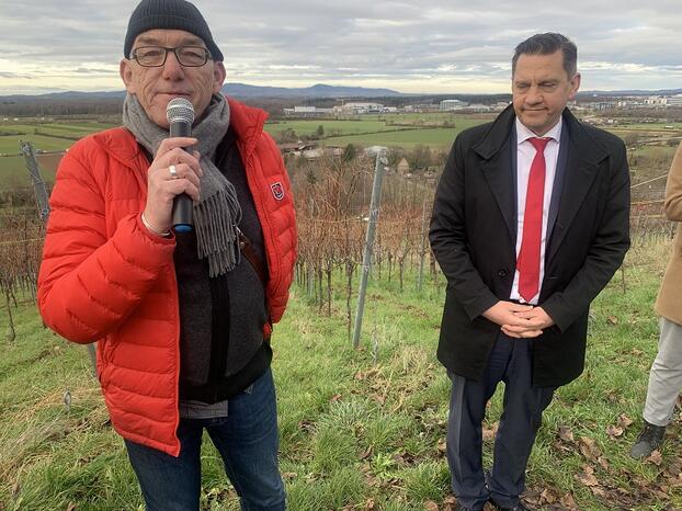 Hier ist Daves Reportage von der Begehung des Geländes, auf welchem großflächige Baumaßnamen geplant sind, mit Interviews und Statements, unter Anderem mit dem BI-Vorsitzenden Thomas Reipöler, Verkehrsplaner Paul Tränkle, Manfred Meyer, Weinprinzessin Rosa Kost, Johannes Fechner, SPD (MdB) und Uwe Stramka.