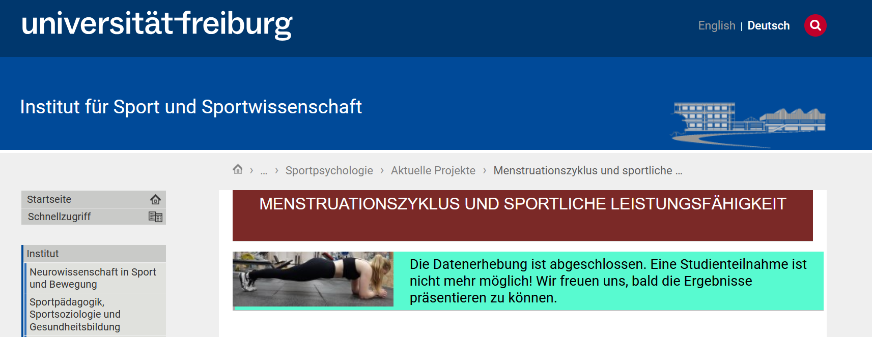 Das Institut für Sport und Sportwissenschaft hat im vergangenen Jahr eine Studie zu Menstruationszyklus und sportliche Leistungsfähigkeit durchgeführt. Dazu wurden volljährige Sportlerinnen, die sich vor der Menopause befinden, nicht hormonell verhüten einen regelmäßigen Zyklus haben und keine Erkrankungen haben, die den Zyklus beeinträchtigen, als Versuchspersonen gesucht.