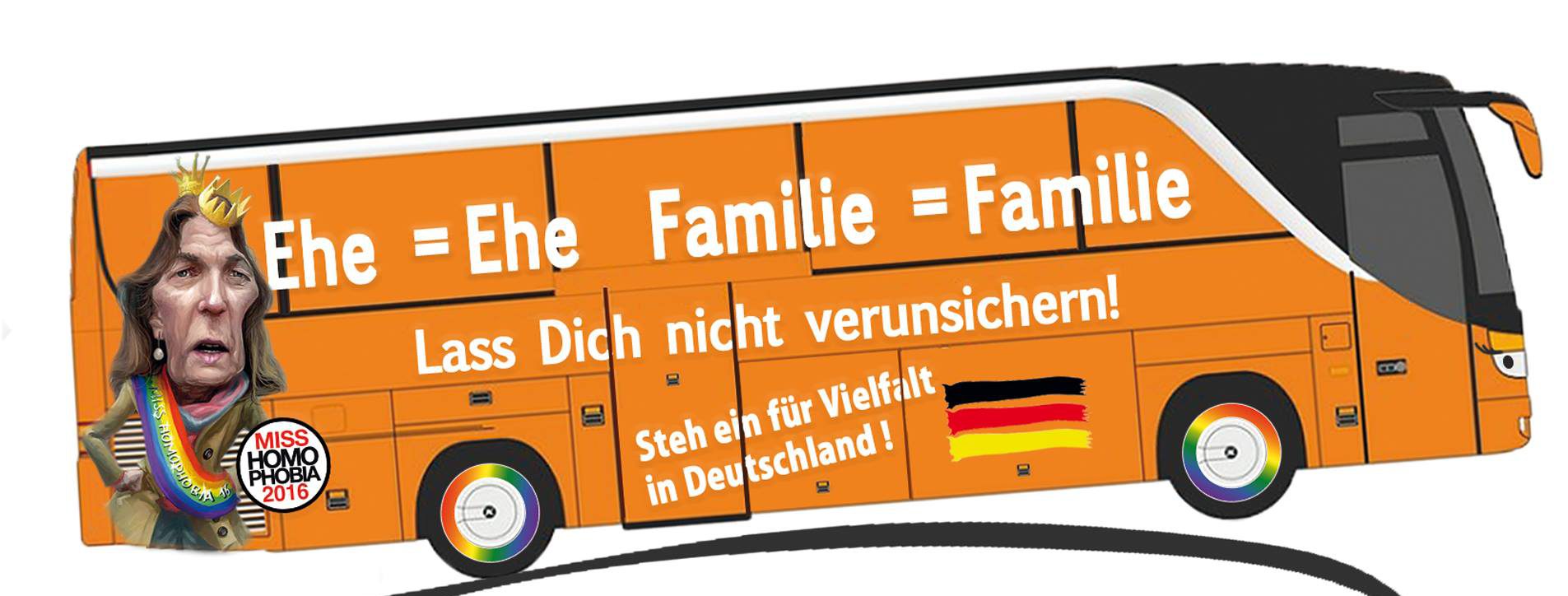 Morgen soll in Berlin der “Marsch für das Leben “, stattfinden, eine Kundgebung christlich-fundamentalistischer Abtreibungsgegner*innen. Gleichgesinnte von der homo- und transfeindlichen „Demo für alle“ haben aber schon für dem heutigen Freitag eine Aktion geplant. Die Aktivist*innen von der Demo für alle möchten mit einem Bus vor das Kanzleramt fahren, mit einem „Bus für Meinungsfreiheit“. Der „Bus für Meinungsfreiheit“ ist vor knapp eineinhalb Wochen in München gestartet und hat in mehreren deutschen Städten Station gemacht, unter anderem in Karlsruhe. Am zehnten Tag der Bustour soll der Bus heute sein Ziel erreichen. Gegenprotest hat sich aber schon spontan formiert. Lisa sprach mit Jörg Steiner vom Lesben- und Schwulenverband Berlin.