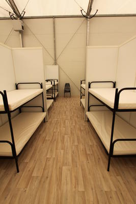 BEA, das heißt: hunderte von Menschen, die erst vor kurzem in Deutschland angekommen sind, sich sprachlich kaum verständigen können, sich nicht auskennen und gezwungenermaßen tatenlos auf das für sie existentielle Asylverfahren warten, dabei in Massenunterkünften untergebracht sind und nur mit Essen und Kleidung versorgt werden: Eine Situation, in der sie weitgehend den Umständen ihrer ausgeliefert sind. Und die werden maßgeblich von den Dienstleistungsunternehmen geprägt, die dort zugange sind. Das Regierungspräsidium Freiburg hat in der BEA verschiedene Unternehmen engagiert: Die Betreibergesellschaft European Homecare - die auch für die ärztliche Versorgung, für Krankenscheine und Taxischeine für Kranke zuständig ist - , das Sicherheitsunternehmen BIG und eine Cateringfirma. Die Wohlfahrtsverbände dagegen schließen für die Sozialberatung direkt mit dem Land Verträge ab.
